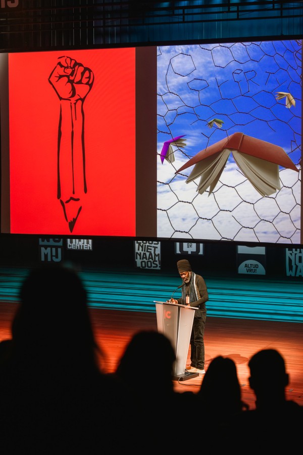 Right from the start, it was clear that this would not be a conventional conference. Before a single speaker had taken the stage, the space already felt charged: a diverse audience filled the venue, ranging from young students to established graphic designers, many of them clearly engaged with the themes at hand. That sense of urgency was amplified by the opening performance by Guido de Boer (NL).