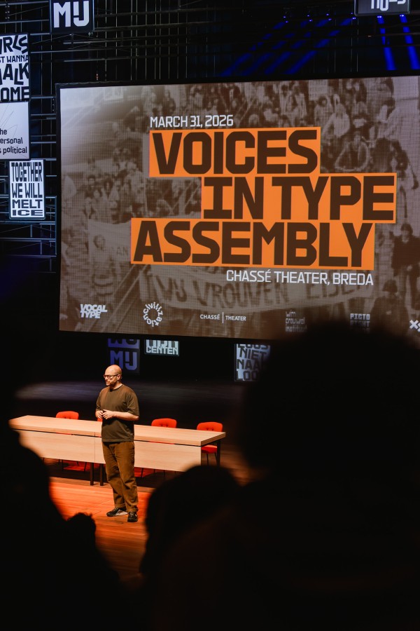 On Tuesday, March 31 2026, the Voices in Type Assembly brought together designers, students, educators and cultural professionals at the Chassé Theater in Breda. Organised by Graphic Matters in collaboration with the Wim Crouwel Instituut, the event also marked the closing of Graphic Matters’ Characters: Voices in Type project—a research-driven initiative exploring how typography operates as a cultural, social, and political force. In the course of the day, eleven international designers took the stage, each presenting their own perspective on the role of type and design in today’s world.
