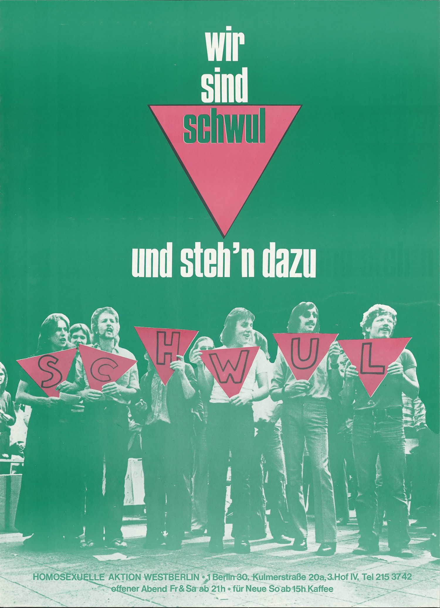 Figuur 2 Onderschrift voor HAW: Mobilisatieposter door Homosexuelle Aktion Westberlin, 1975, foto door Ludwig Reinhold Hilgering,  Schwules Museum Berlin