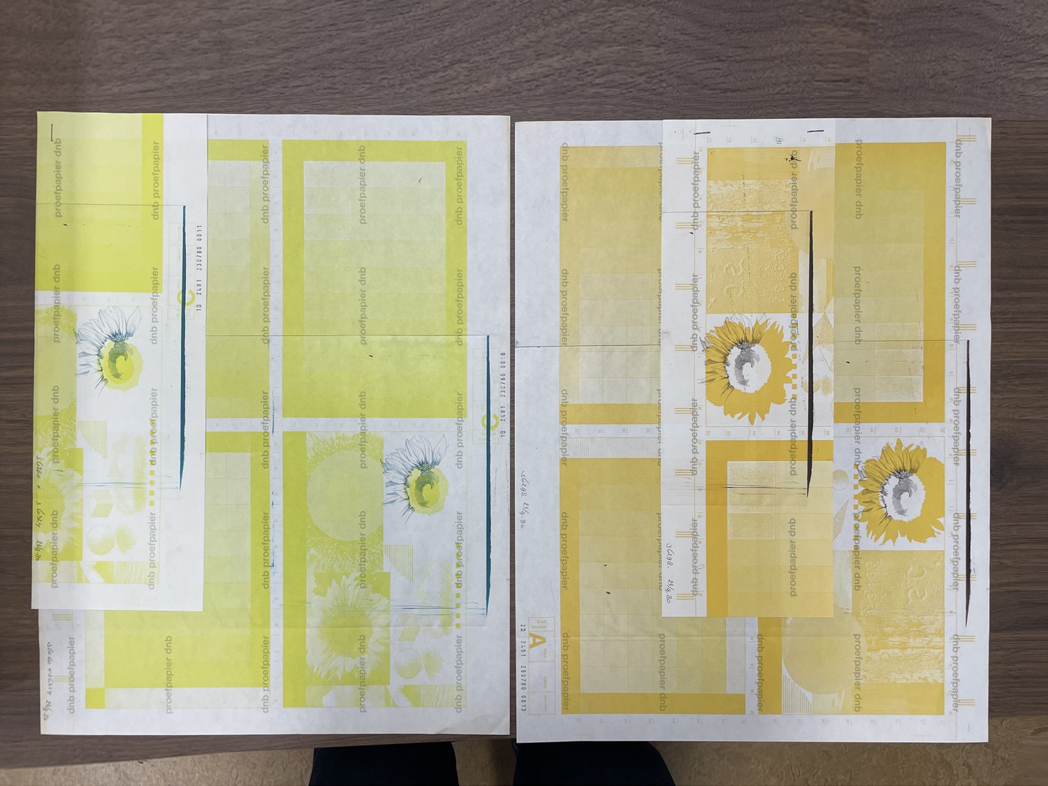 Ondanks de veertig jaar die tussen de twee ontwerpen zit, de fysieke verscheidenheid en de verschillende opdrachtgevers en uitvoerders komen er dus gelijkenissen bovendrijven wat betreft de grafische elementen. De overeenkomstige wijze was de succesformule waarmee Oxenaar de nationale identiteit op het papieren bankbiljet representeerde en Dietwee de gekozen identiteit van de bank op een PVC pas verankerde. Beide ontwerpen voorzien onze dagelijkse betaalmiddelen van waarde en representeren onze identiteit. Het effect hiervan ervaar ik zelf dagelijks met het gebruik van de bankpas, zoals men dat ook met de Zonnebloem heeft ervaren.